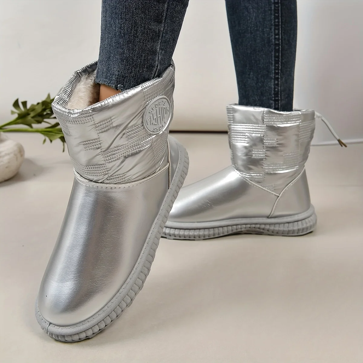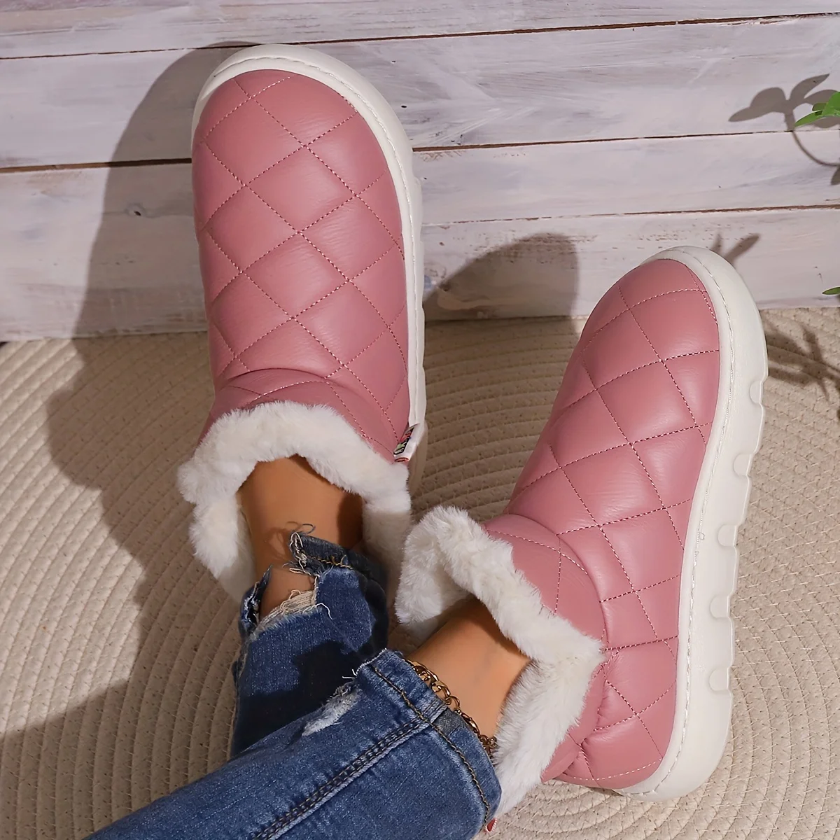 Pantoufle Bottes Matelassés, Imperméables Doublure En Peluche Slip
