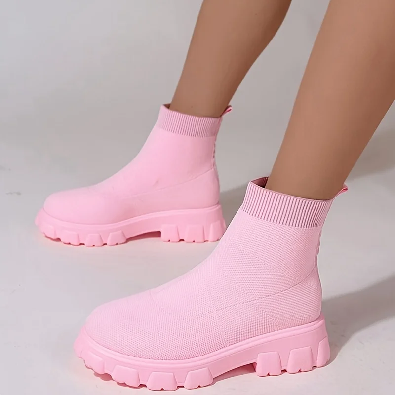 Pantoufle Bottines tricotées à plateforme de couleur unie