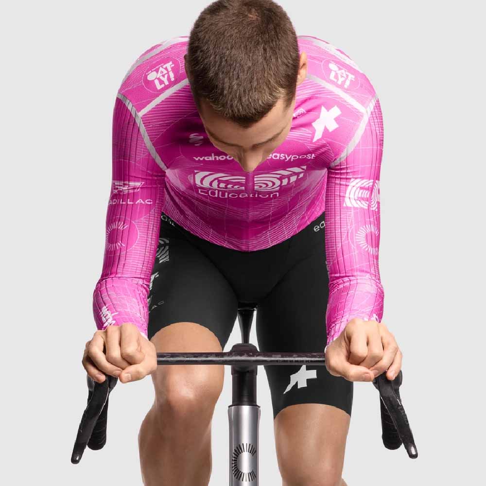 Conçu et validé au plus haut niveau de la compétition, le RS Jersey S11 s’illustre sous les couleurs de l’équipe EF Pro Cycling. Son design exclusif, baptisé « WE RIDE IN PEACE », associe coutures argentées et détails graphiques numériques, évoquant l’esthétique des premières missions spatiales.