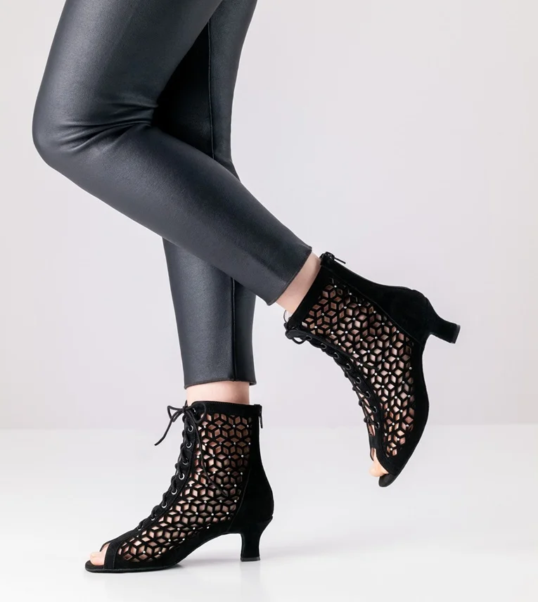 Daim souple noir combiné à des strass brillants - Doublure