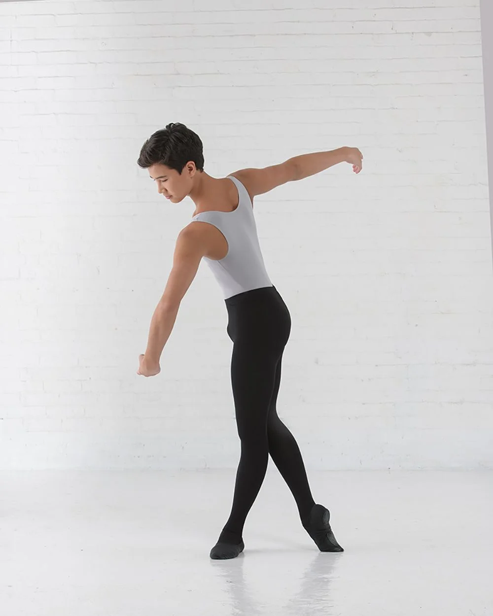 Collants de danse avec pied pour les garçons et les hommes. Disponible en couleur noir et gris acier.