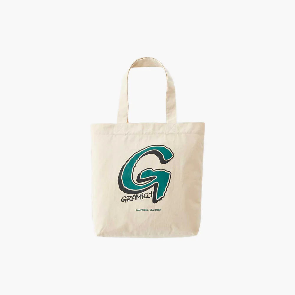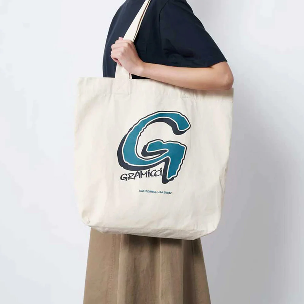 Le Gramicci Tote Bag G-Logo Natural un sac réutilisable idéal pour les courses, la plage ou tous les jours dans un style décontracté. Ce sac fourre-tout est fabriqué en coton biologique cultivé dans une ferme qui n’a utilisé aucun engrais ou pesticide chimique depuis plus de trois ans