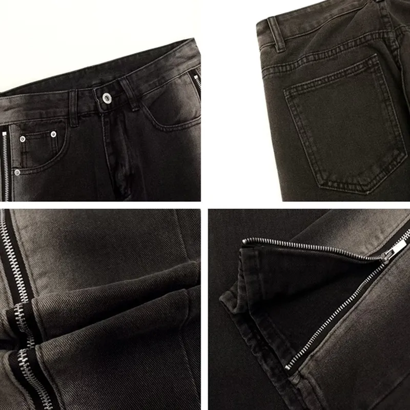 Hommes Jeans Pantalon Split Zipper Droit Vintage Lavé Noir Hip Hop