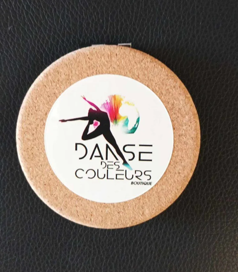 MIROIR DE POCHE double face Danse des couleurs® à fermeture magnétique. A emporter partout dans votre sac, trousse maquillage, en voyage, stages de danse. * 1 face normale * 1 face zoom Diamètre: ∅ 40 mm
