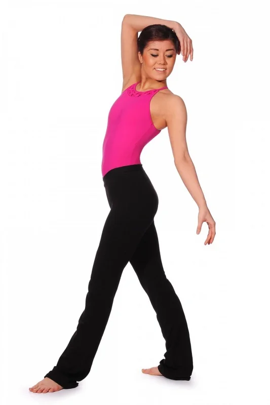 Pantalon de jazz classique avec taille en V en coton doux et respirant. Associez-le à l’un de nos justaucorps pour un style classique de cours de danse.
