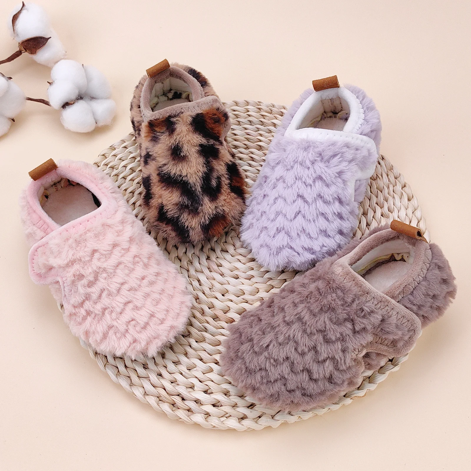 Découvrez nos pantoufles en fourrure pour bébé à semelle souple, parfaites pour garder les pieds de votre enfant au chaud et confortablement installé à la maison.