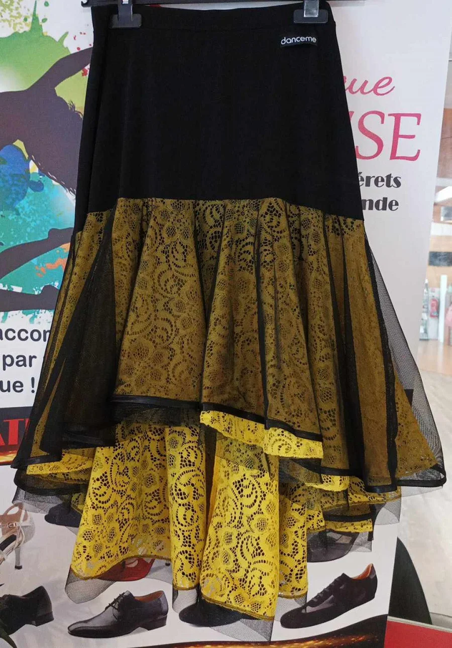 UL413-11 DANCEME-Jupe de danse latine femme guipure résille noir dentelle jaune